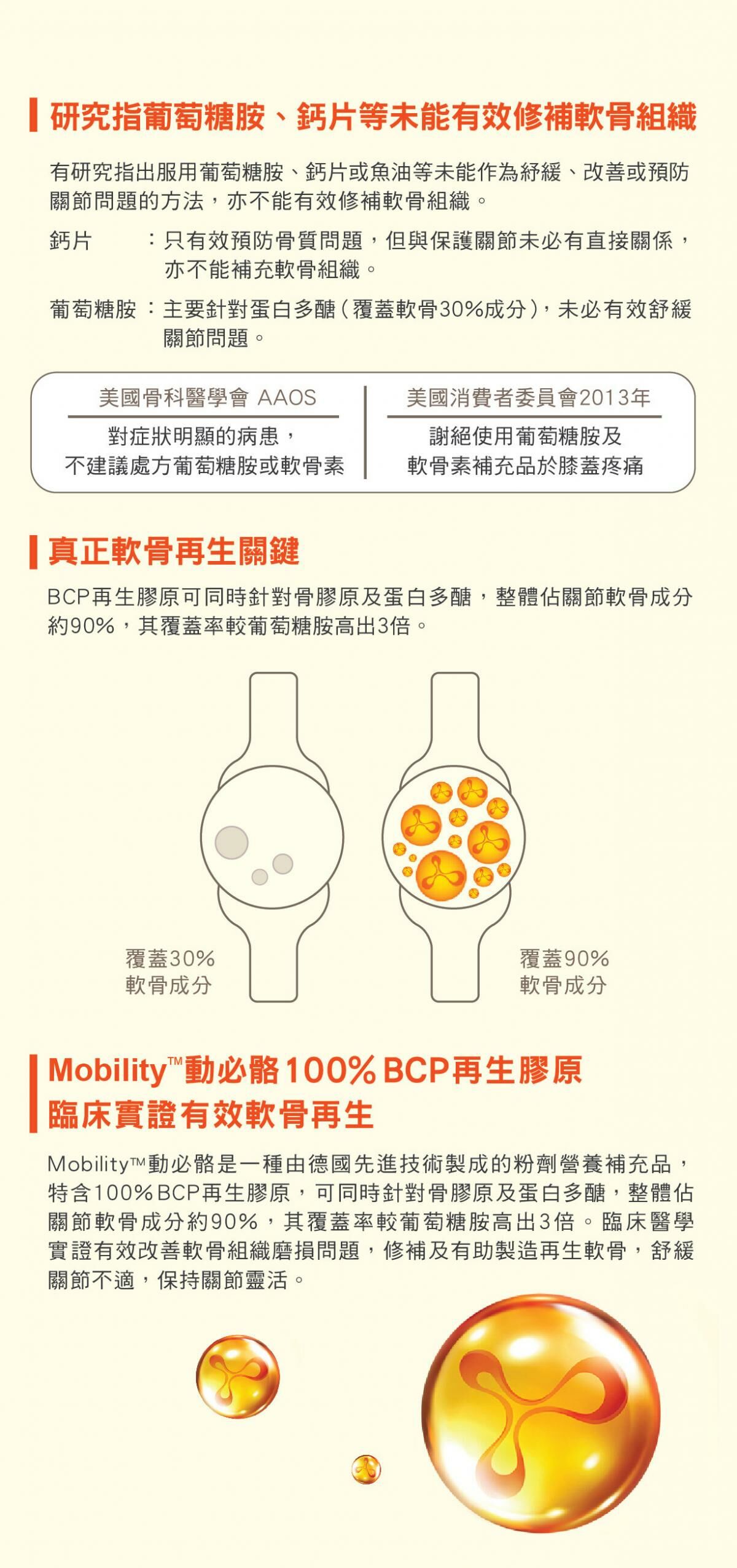 German scientific research formula for joint health. It contains 100% hydrolyzed collagen. It has natural ingredients and can be used as a daily supplement. The ingredients of MobilityTM can improve cartilage health from the root, effectively repair and promote cartilage regeneration, and keep joint