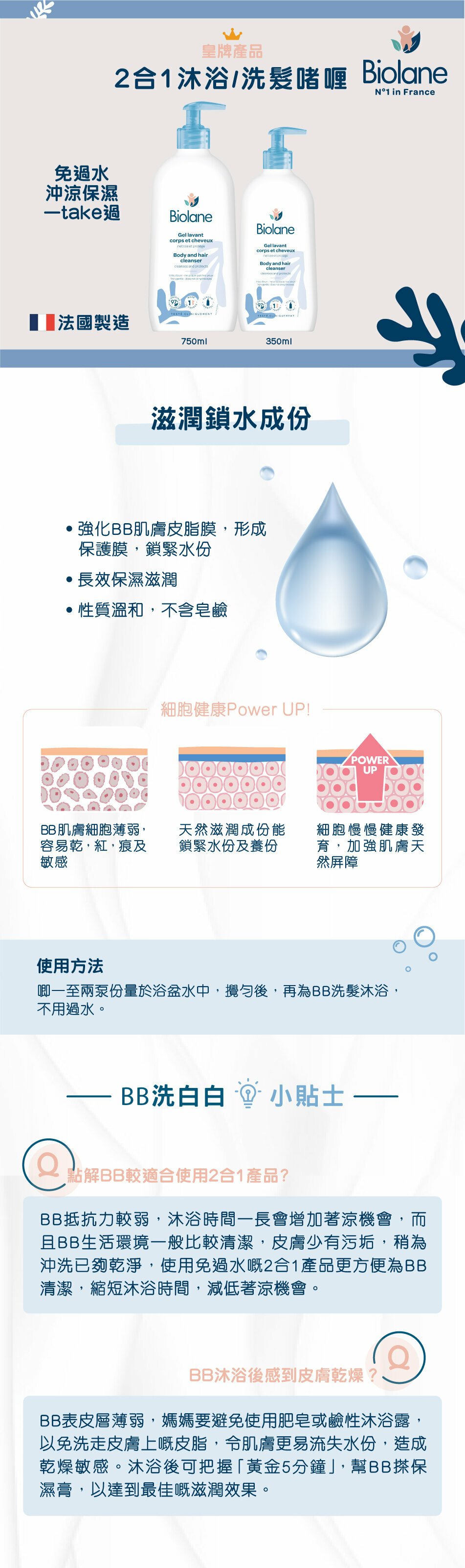 Cleans the scalp, hair and body at the same time in one step, shortens bathing time and reduces the chance of catching cold
